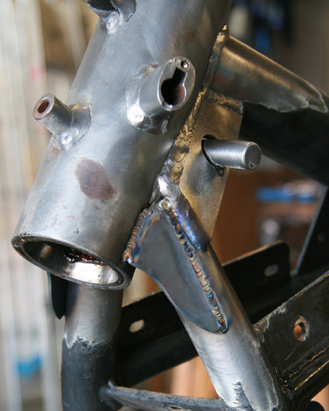 All aspects of frame and swing arm repair or manufacture can be undertaken, the picture shows a repair and re-enforcing of the steering head a common area of stress cracking on triple frames. I am a Lloyd’s coded welder and lifelong metal basher so you can be assured the standard of repair or modification is first class in its execution, neat, strong and pleasing to the eye.